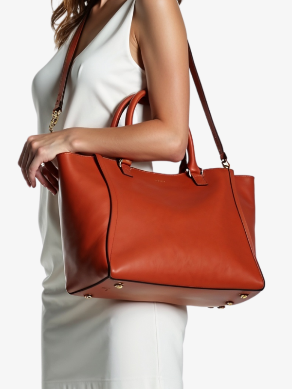 Wyposażona w solidne uchwyty i regulowany pasek na ramię, torba oferuje wszechstronność noszenia – zarówno w ręku, jak i na ramieniu. Ciepły bursztynowy kolor sprawia, że jest doskonałym dodatkiem do każdej stylizacji, niezależnie od okazji.